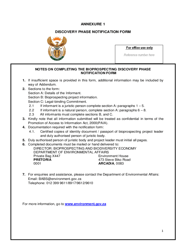Get the free ANNEXURE 1 DISCOVERY PHASE NOTIFICATION FORM