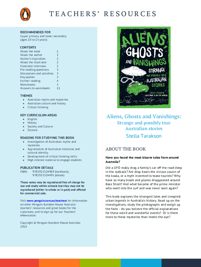 TEACHERS RESOURCES RECOMMENDED FOR Upper primary and lower secondary (ages 10 to 15 years)CONTENTS About the book About the author Authors inspiration About the illustrator interview Rereading questions