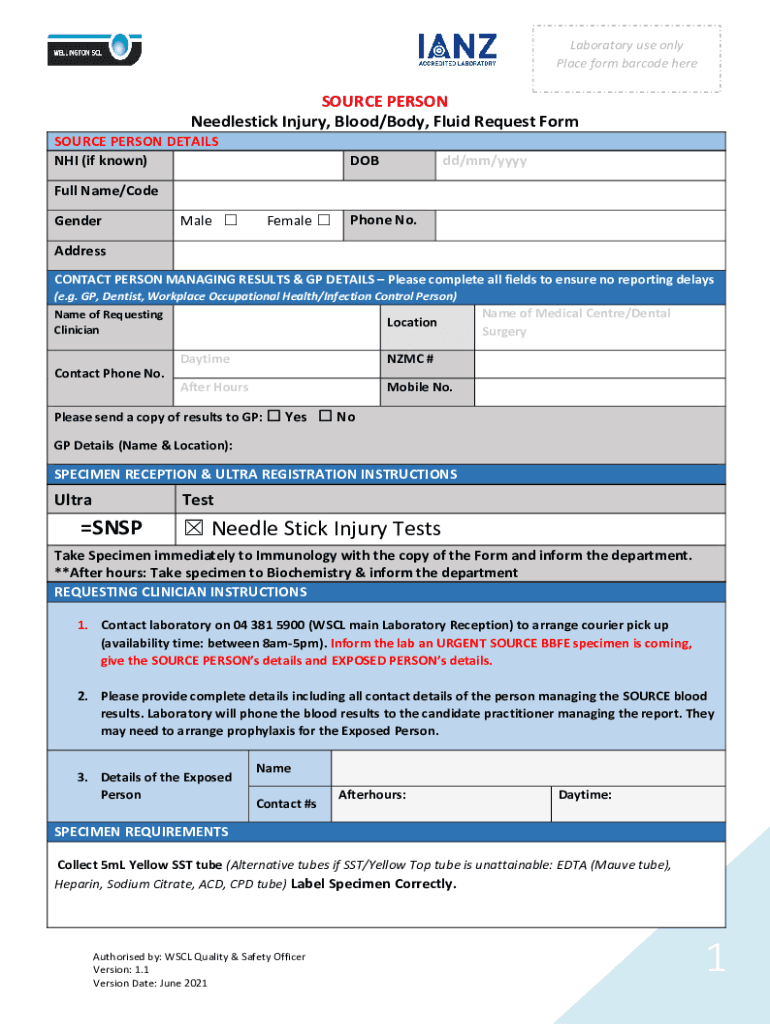 NeedlestickInjury, Blood/Body, FluidRequestForm