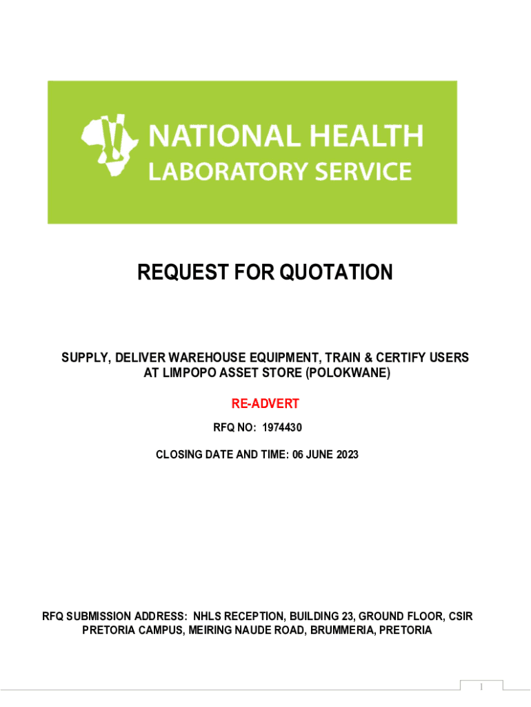 REQUEST FOR QUOTATIONSUPPLY, DELIVER WAREHOUSE EQUIPMENT, TRAIN & CERTIFY USERS