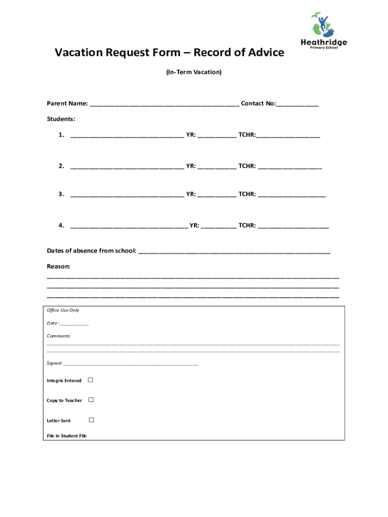 Vacation Request Form Record is not the form you're looking for?Search for another form here.