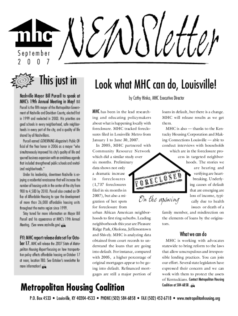 2 0 0 7NEWSletterThis just look what MHC can do, Louisville! Nashville Mayor Bill Purcell to speak at