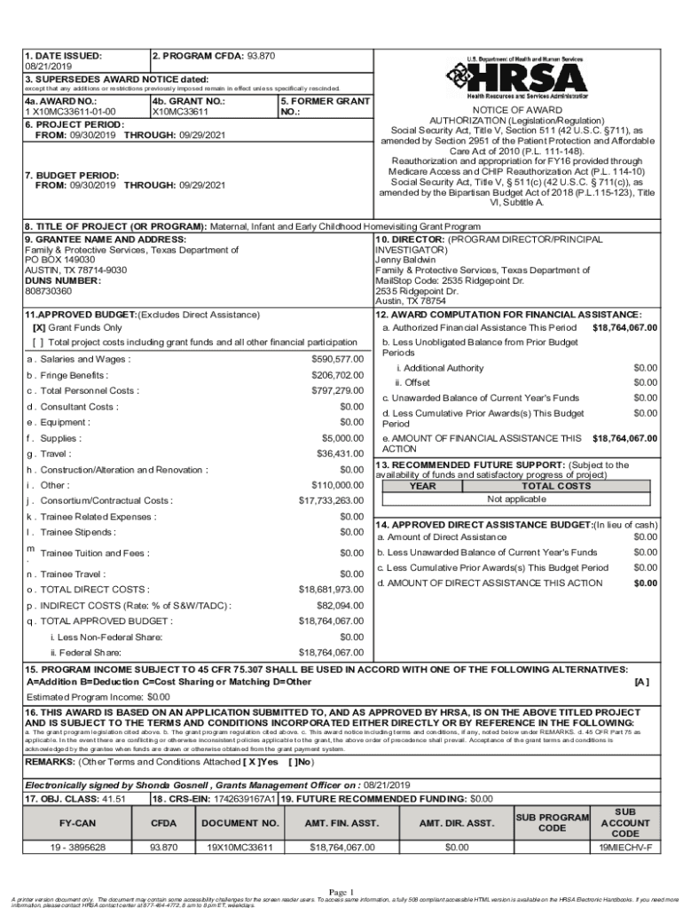 1.REISSUED: 2.PROGRAMMED:93.870 08/21/2019 3.SUPERSEDESAWARDNOTICEdated:8HliiAIexceptthatanyadditionsorrestrictionspreviouslyimposedremainineffectunlessspecificallyrescinded.4a.AWARD NO.: 4b. GRAN