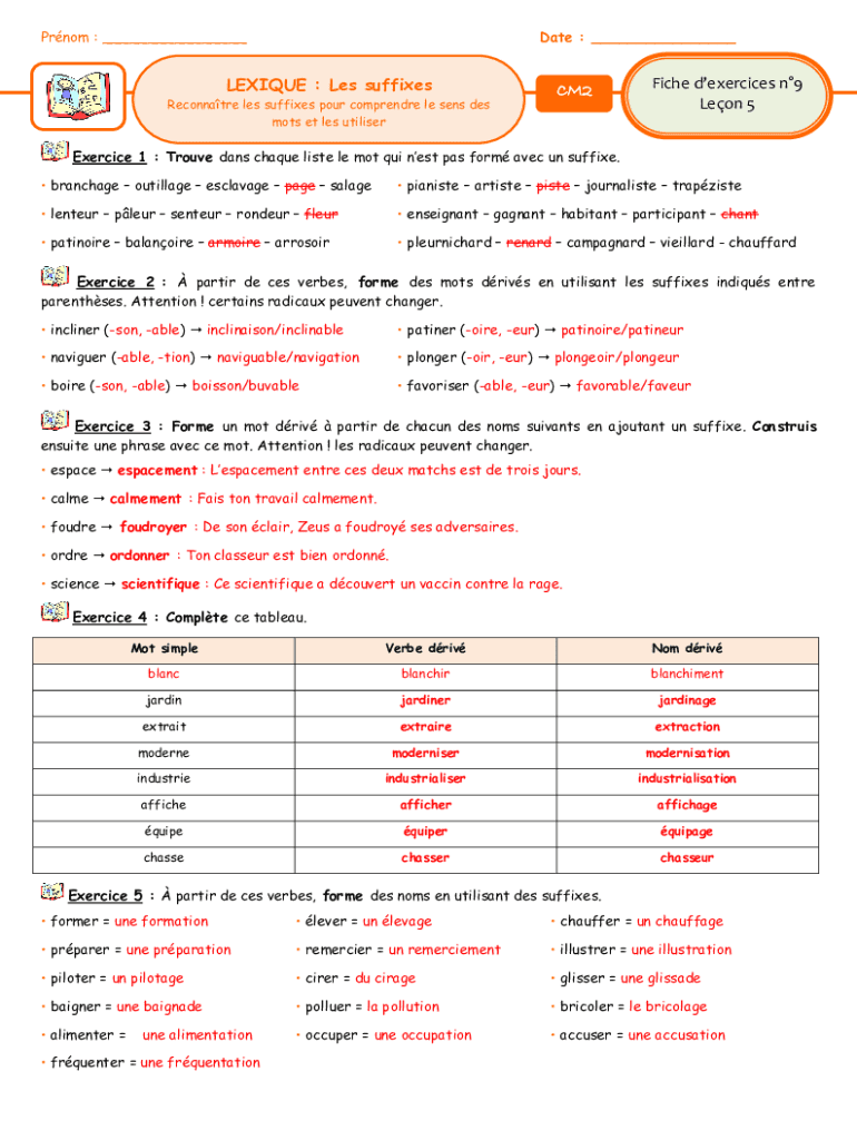Comment remplir lexique les suffixes fiche
