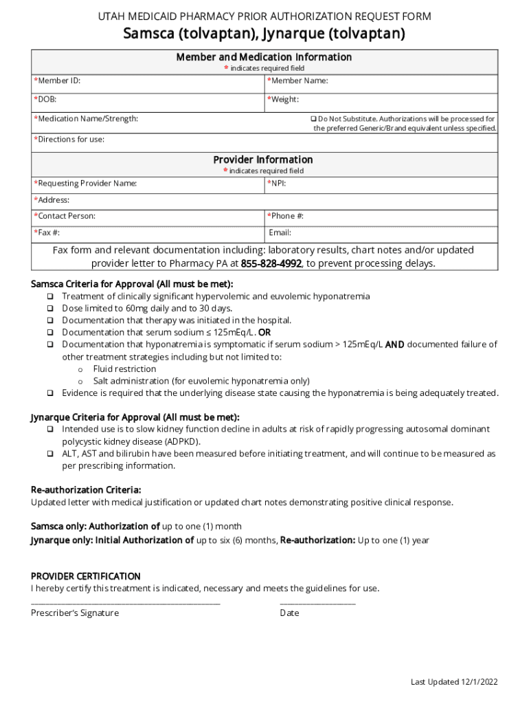 UTAH MEDICAID PHARMACY PRIOR AUTHORIZATION REQUEST FORMSamsca (tolvaptan), Énarque (tolvaptan)