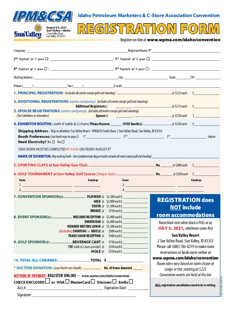 Sun Valley, ID 83353Idaho Petroleum Marketers & Store Association ConventionREGISTRATION Preregister online at www.wpma.com/idaho/conventionCompany: