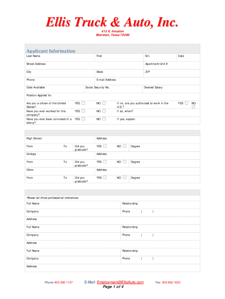 Sherman, Texas 75090Applicant Informational NameFirstM. I. Street AddressDateApartment/Unit #CityStatePhoneEmail Addressable AvailableZIPSocial Security No.