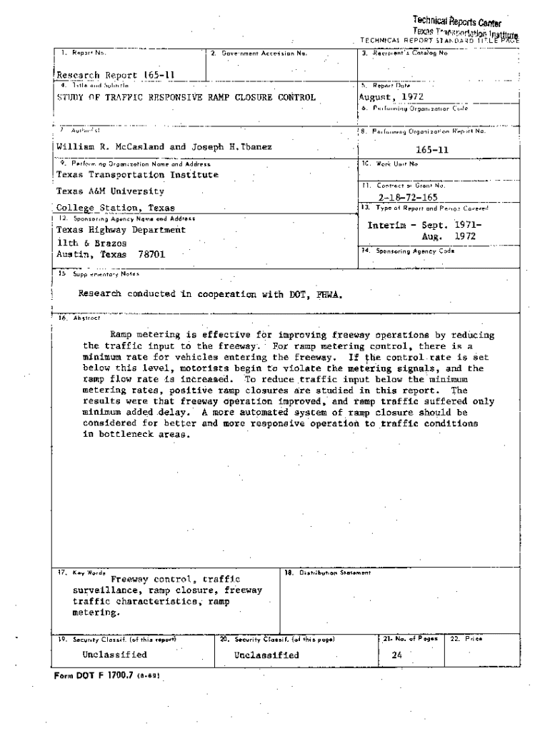 Technical Reports Center Texas T, .no;r:\” flat.!r: JnstttufaTECHNICAL REPORT STANDARD TITLE A\'C\'F 1. Report No.3. Recipient\'s Catalog No.2. Government Accession No. Research Report 16511 __.f.
