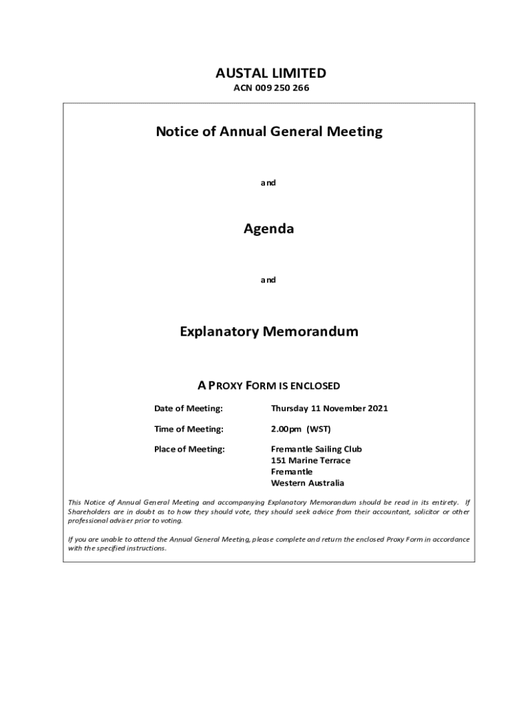 Get the free Notice of Annual General Meeting/Proxy Form - Austal ...