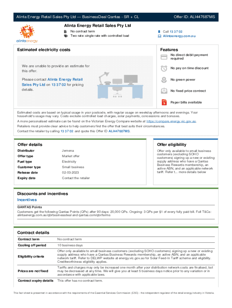Get the free Victorian Energy Fact Sheet - Offer ALI447687MS