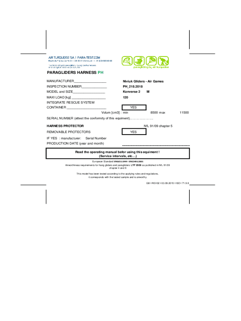MANUFACTURER___Niviuk Gliders Air GamesINSPECTION NUMBER___PH_218.2018MODEL and SIZE___Konverse 2MAXI LOAD [kg] ___120MINTEGRATE RESCUE SYSTEM