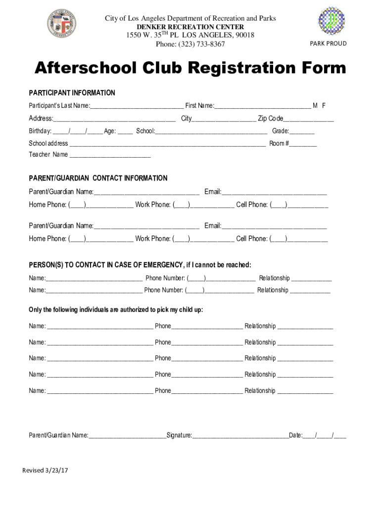 LAAfterschool Club Registration Form