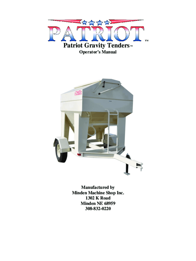 Patriot Gravity Tenders Operators ManualManufactured by Minded Machine Shop Inc. 1302 K Road Minded NE 68959 3088320220TMTable of Contents Introduction3Safety and Operation Rules4Machine Inspection8Safety