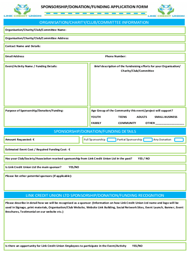Sponsorshipdonationfunding Application Form is not the form you're looking for?Search for another form here.