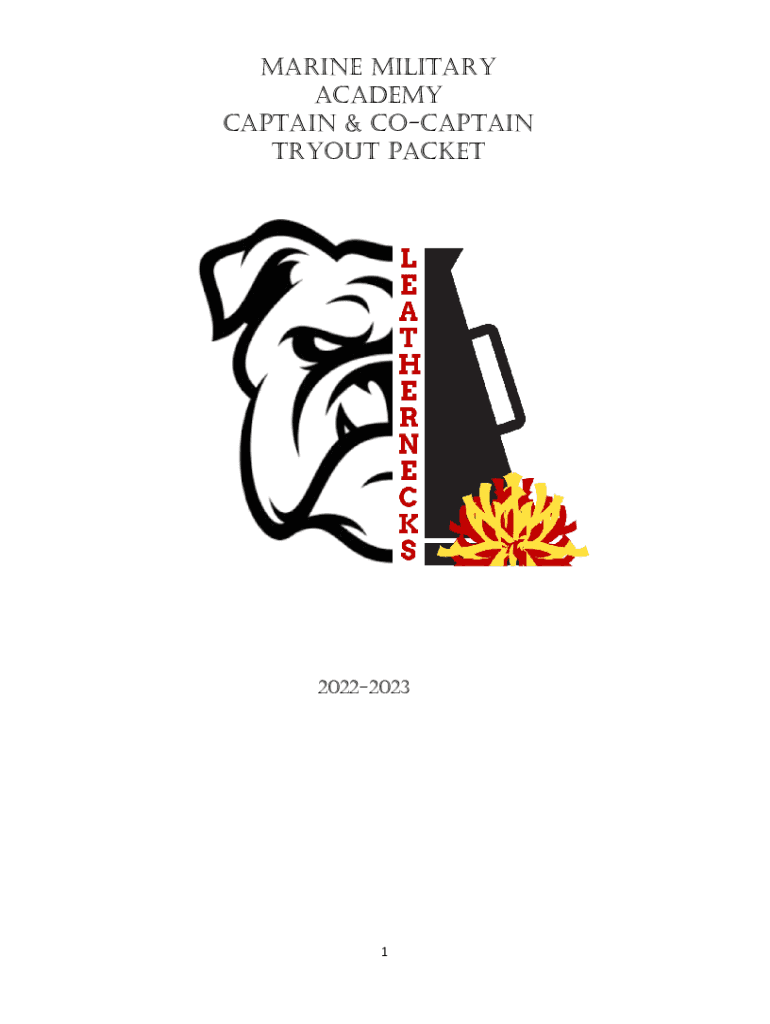 Marine Military Academy Captain & Captain Tryout packet202220231The 20212022 Marine Military Academy Cheerleading Squad Leadership Body will be made up of the following: Captain Social Officer/Spirit