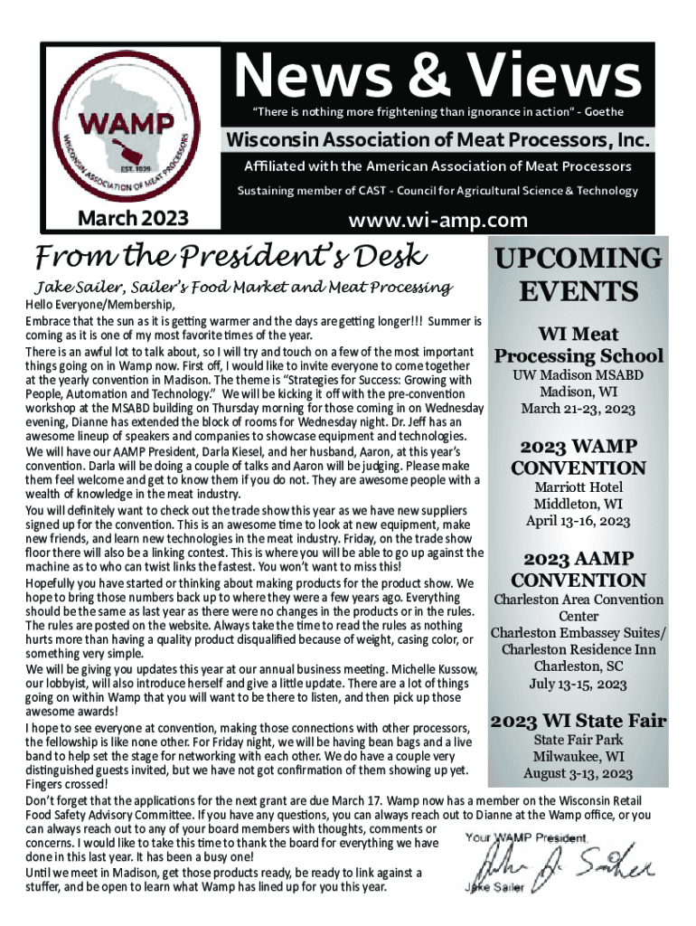 Get the free News & Views - Wisconsin Association of Meat Processors