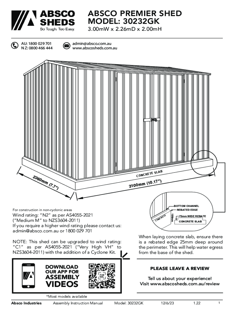 Get the free Absco Premier Garden Shed Assembly Instructions Model
