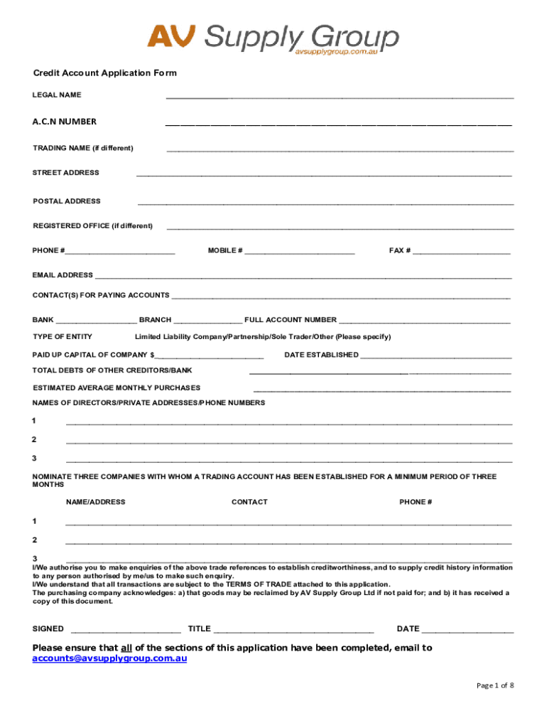 Any individual or business looking to apply for credit from a financial institution or lender is required to file AVS credit application form.