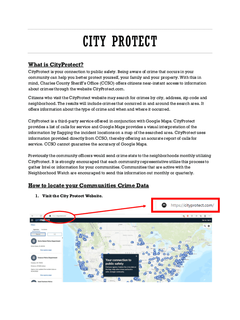 CITY PROTECT What is CityProtect? CityProtect is your connection to public safety. Being aware of crime that occurs in your community can help you better protect yourself, your family and your property.