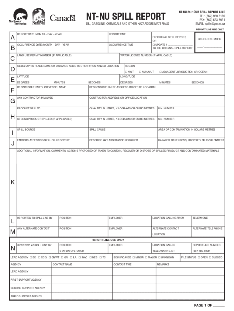 Get the free SPILL CONTINGENCY PLAN NORTHWEST TERRITORIES ...