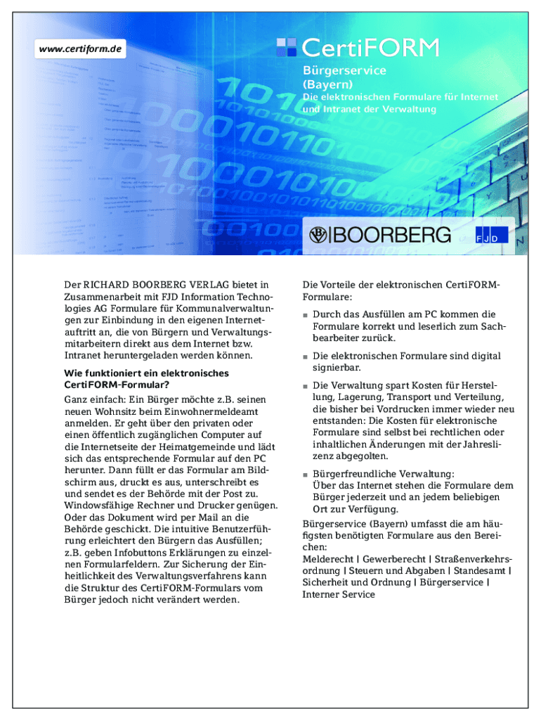 Der Zweck der elektronischen Formulare FR ist es, eine effiziente und transparente Kommunikation zwischen Bürgern/Unternehmen und Behörden zu gewährleisten.