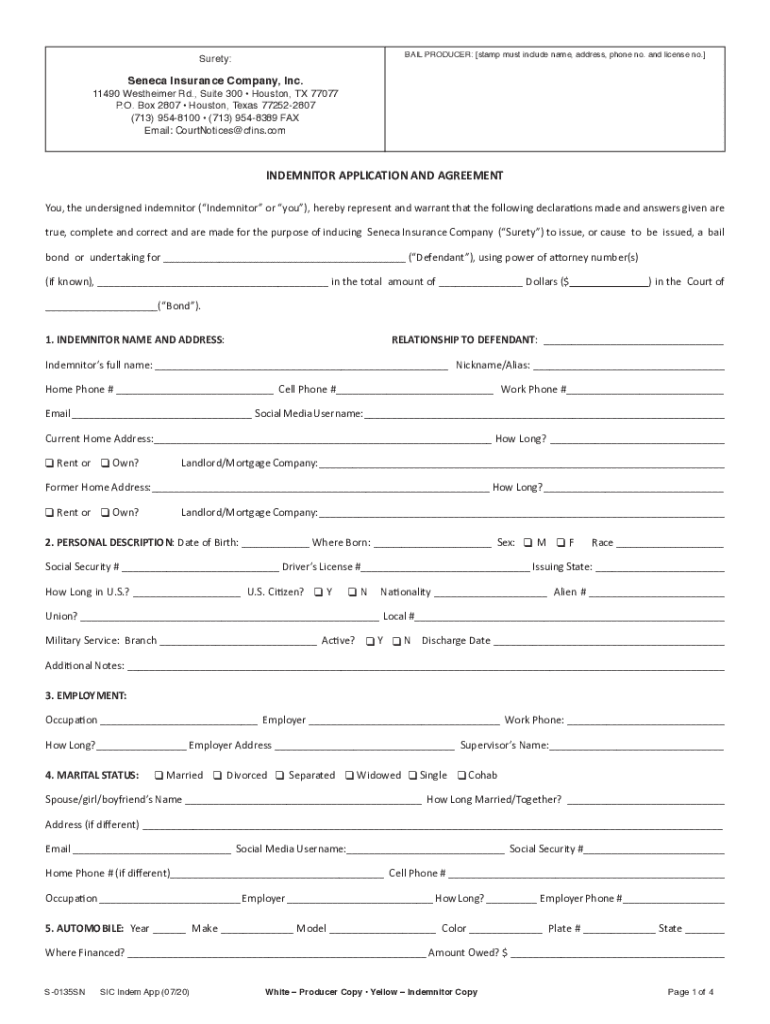 BAIL PRODUCER: [stamp must include name, address, phone no. and license no.] Surety:Seneca Insurance Company, Inc.11490 Westerner Rd., Suite 300 Houston, TX 77077 P.O. Box 2807 Houston, Texas 772522807