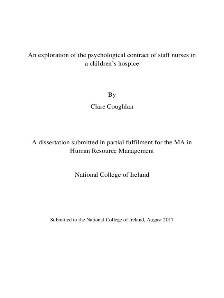 An exploration of the psychological contract of staff nurses in a children's hospice Clare Coughlin dissertation submitted in partial fulfillment for the MA in Human Resource ManagementNational College
