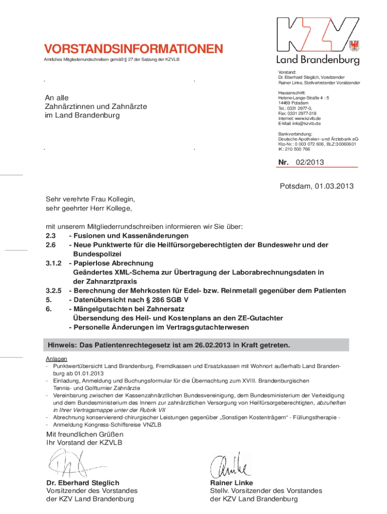 Articles Mitgliederrundschreiben gem 27 her Strung her KZ VLB. Hausanschrift: