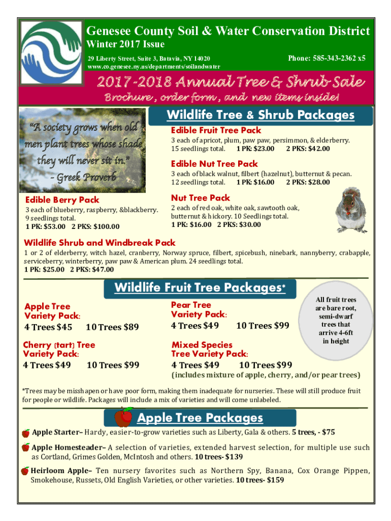 Genesee County Soil & Water Conservation District Winter 2017 Issue 29 Liberty Street, Suite 3, Batavia, NY 14020 www.co.genesee.ny.us/departments/soilandwaterPhone: 5853432362 x520172018 Annual Tree
