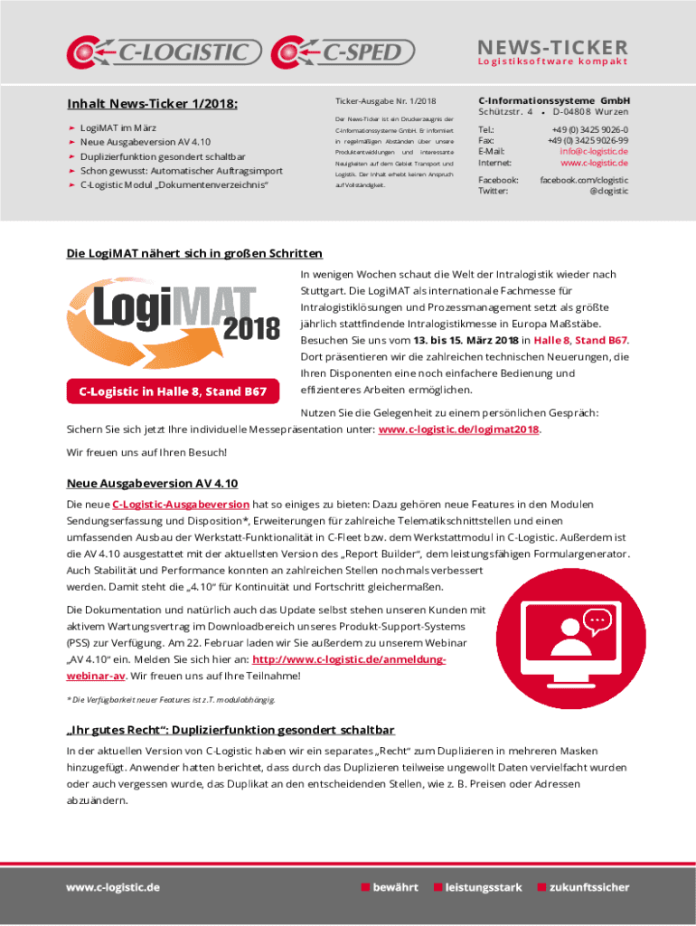 Her Sticker is a Druckerzeugnis derLogiMAT I'm MrzCInformationssysteme GmbH. Er informiertNeue Ausgabeversion AV 4.10in