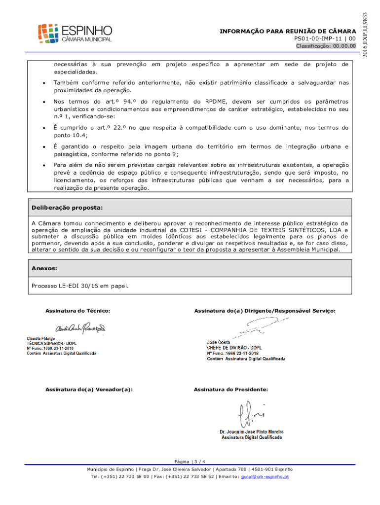 Obtenha o gratuito NIPG: 14431/16 Registo N: 9833 - portal cm-espinho