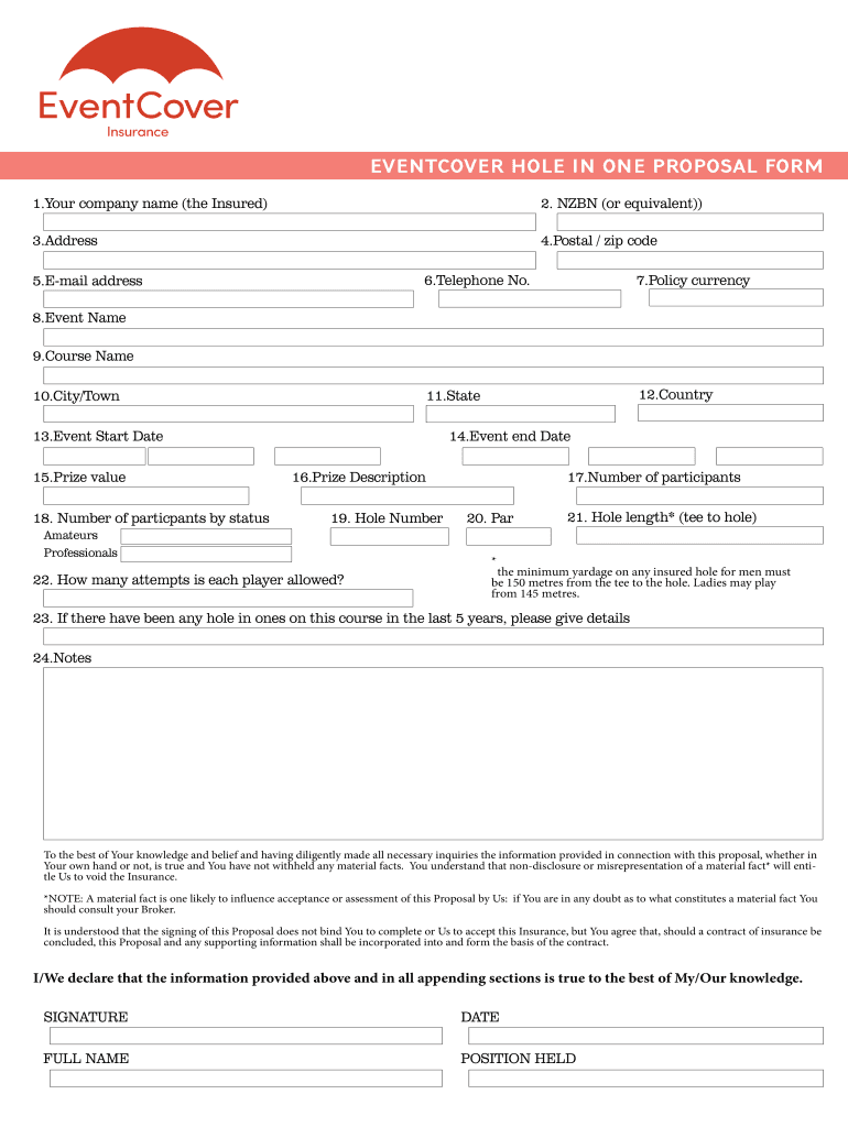 Get the free EVENTCOVER HOLE IN ONE PROPOSAL FORM