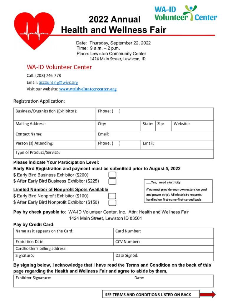 Get the free Health and Wellness FairWA ID Volunteer Center, Inc.