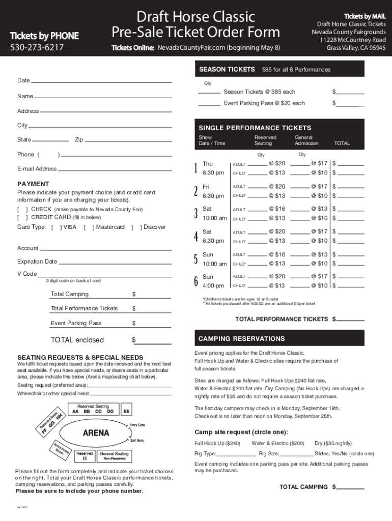 SEASON TICKETSDateAddress___ Season Tickets @ $85 each___ Event Parking