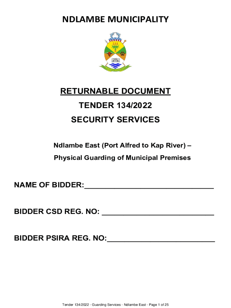 Physical Guarding of Municipal PremisesNAME OF BIDDER:___BIDDER CSD REG. NO: ___BIDDER
