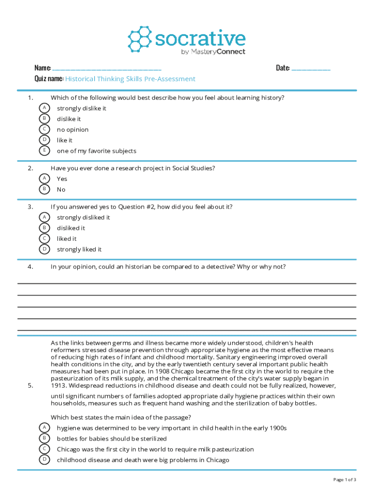 Name: ___Date: ___Quiz name: Historical Thinking Skills PreAssessment