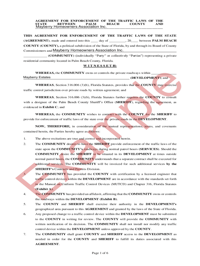 AGREEMENT FOR ENFORCEMENT OF THE TRAFFIC LAWS OF THE