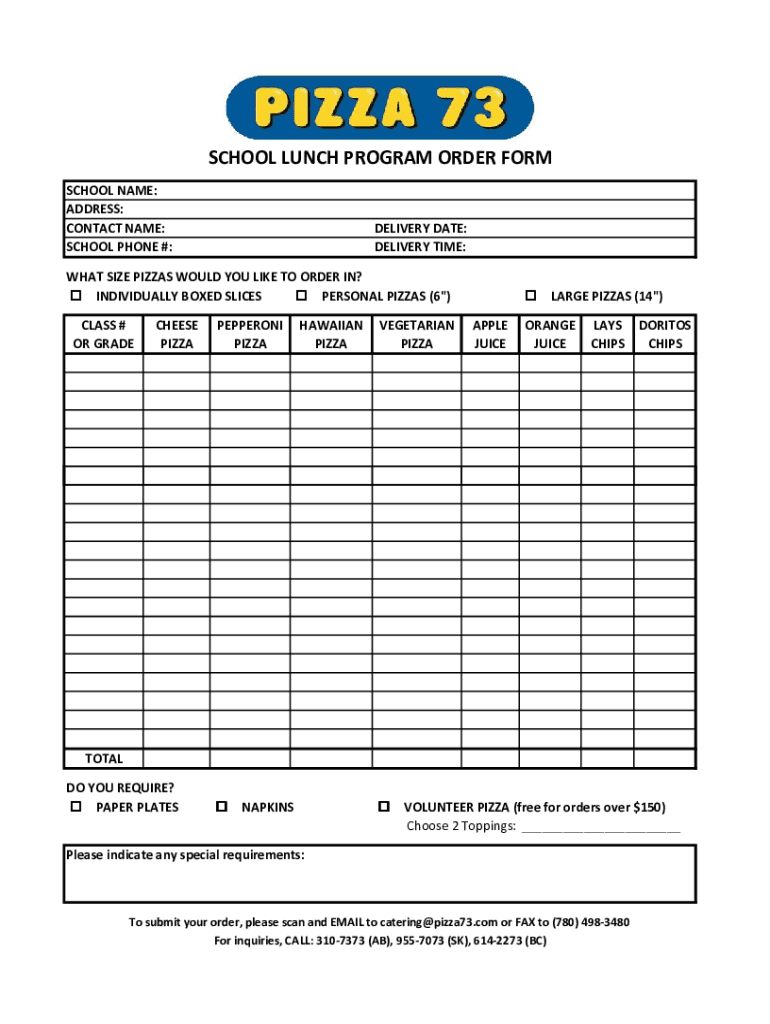 The school lunch program order may require information such as student names, meal selections, and any special dietary needs.
