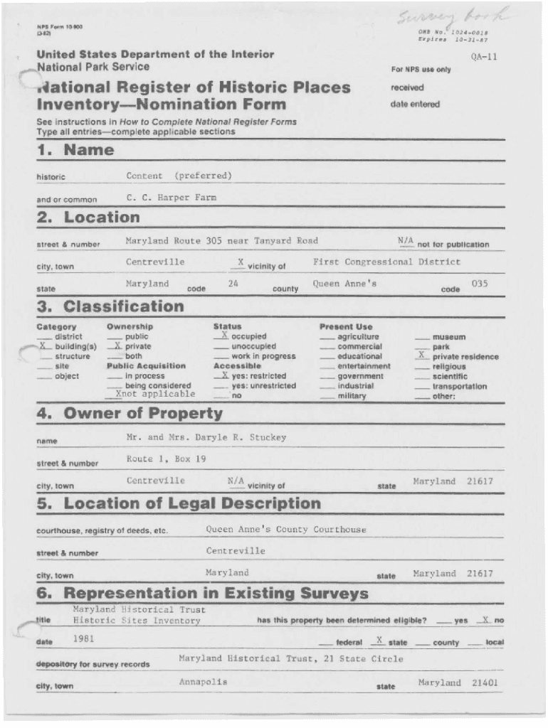 Get the free National Register off Historic Places receivedAPR 2 81987 ... - mht maryland