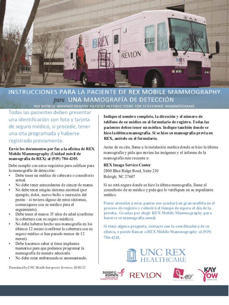 REX MOBILE MAMMOGRAPHY PATIENT INSTRUCTIONS FOR SCREENING MAMMOGRAMSTodas leis patients Eben presenter