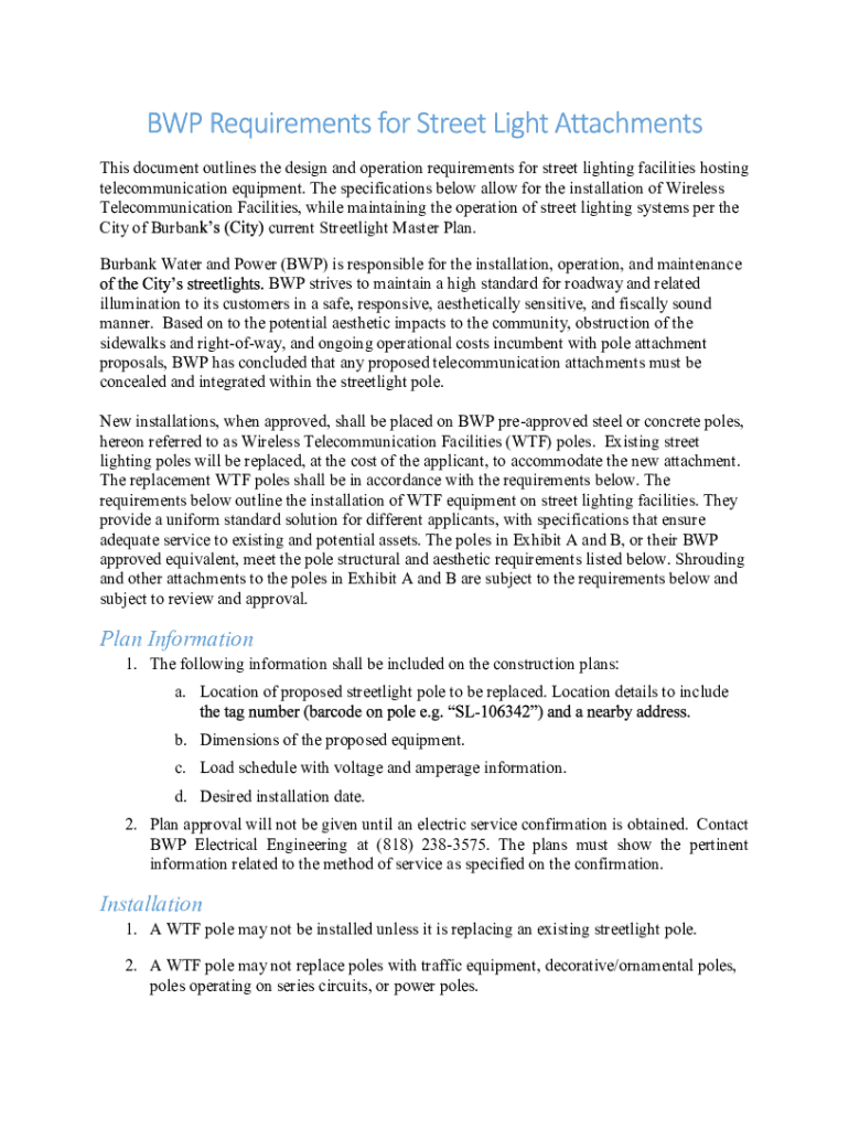 BWP streetlight WTF requirements refer to the specifications and guidelines set by the Burbank Water and Power for the installation and maintenance of streetlights.