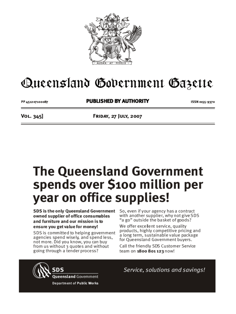 PUBLISHED BY AUTHORITY PP 451207100087Vol. 345]ISSN 01559370Friday, 27 July, 2007The Queensland Government