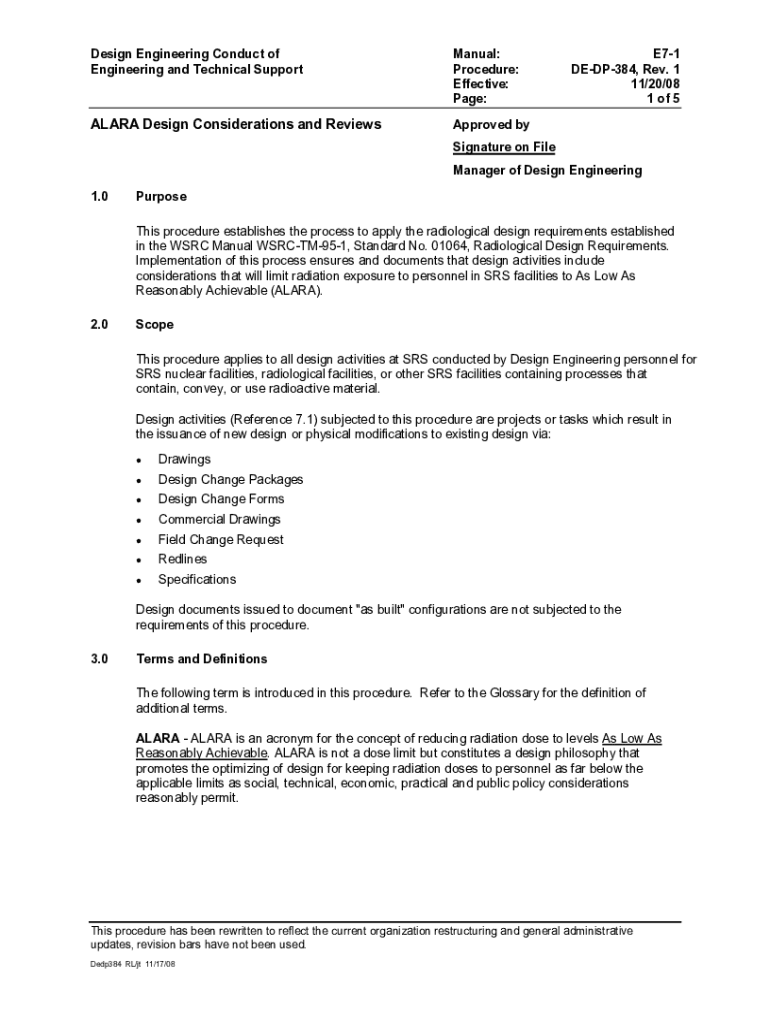 Design Engineering Conduct of Engineering and Technical SupportManual: Procedure: Effective: Page:CLARA Design Considerations and ReviewsApproved byE71 DEDP384, Rev. 1 11/20/08 1 of 5Signature on