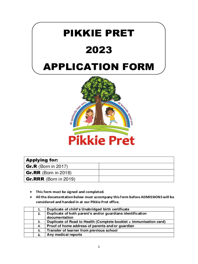 PINKIE POET 2023 APPLICATION Reapplying for: Gr. R (Born in 2017) Gr. RR (Born in 2018) Gr.RRR (Born in 2019) This form must be signed and completed. All the documentation below must accompany this