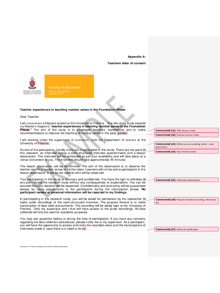 Appendix A: Teachers letter of consentTeacher experiences in teaching number sense in the Foundation Phase Dear Teacher I am xxxxxxxxxx a Masters student at the University of Pretoria. The title of