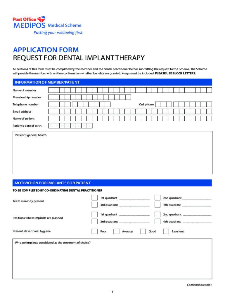 All sections of this form must be completed by the member and the dental practitioner before submitting the request to the Scheme. The Scheme