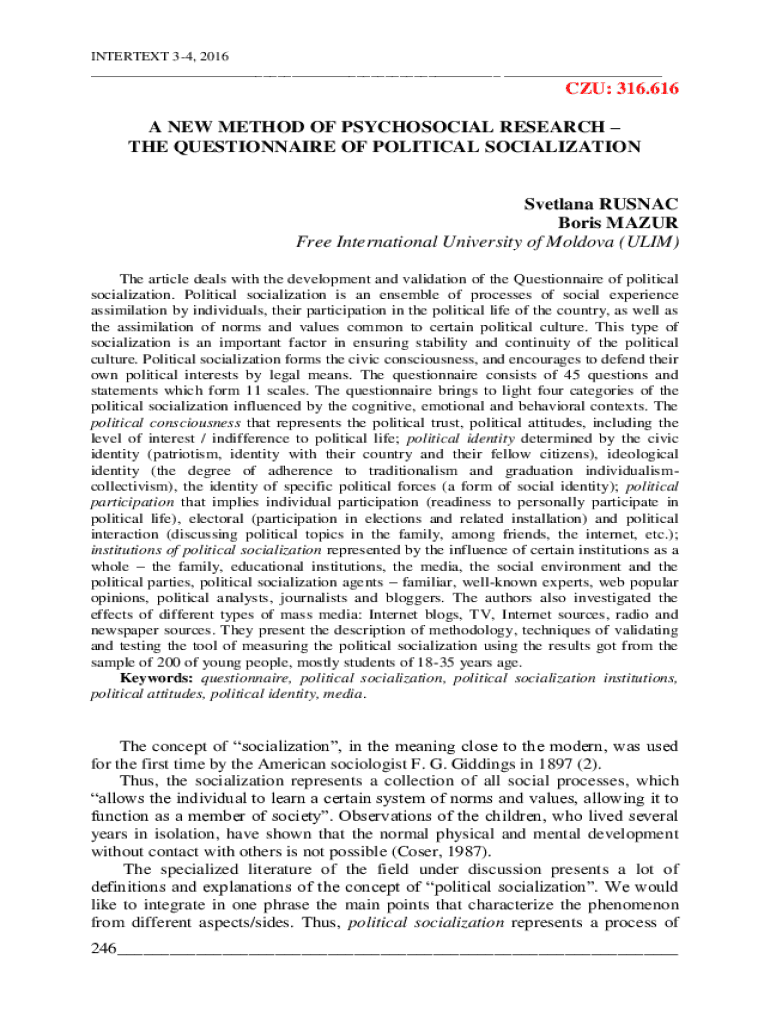 Get the free The Questionnaire of Political Socialization - IBN - Idsi.md