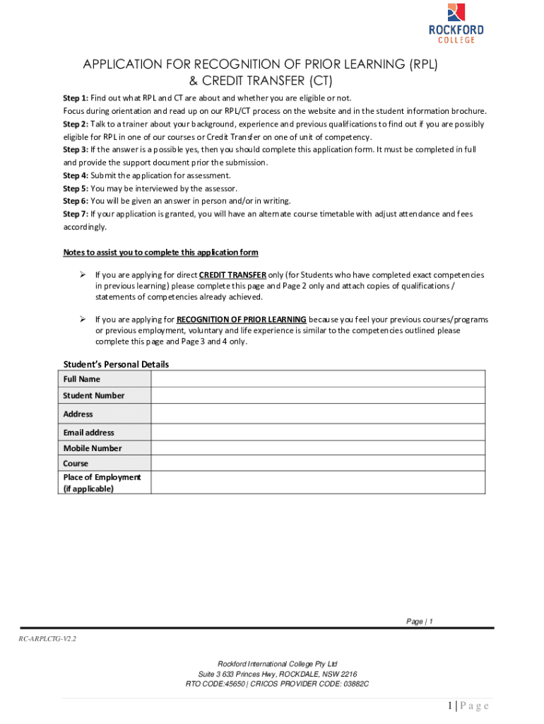 Get the free ADM08 Application form RPL & Credit Transfer (CT) v1
