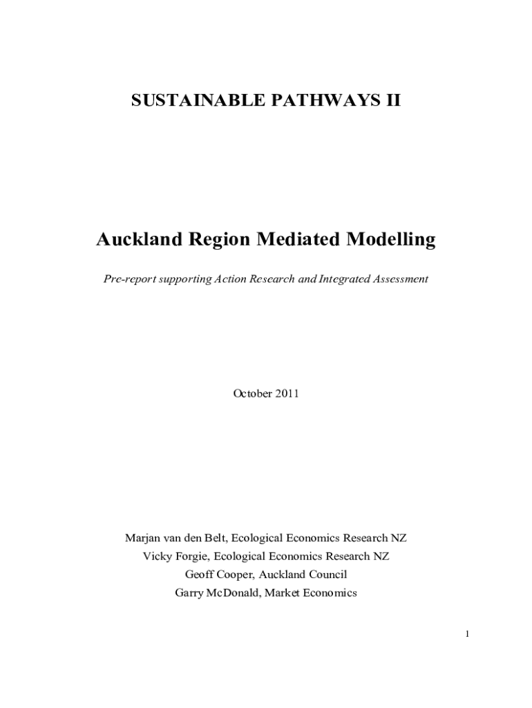 SUSTAINABLE PATHWAYS II Auckland Region Mediated Modelling Airport supporting Action Research and Integrated Assessment October 2011Marjan van den Belt, Ecological Economics Research NZ Vicky Forge,