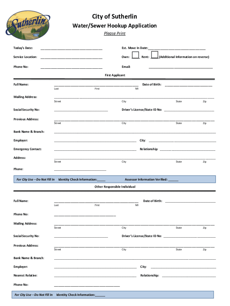 Today's Date:___Est. Move In Date:___Service Location:___Own: ___ Rent: ___(Additional Information on reverse)Phone No:___Email:___First